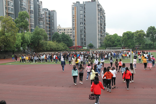 随着总指挥一声令下,学生公寓内响起阵阵急促的防空警报,我校应急疏散演练正式启动。疏散引导组成员快速就位,演练过程中同学们按照疏散路线指示图从公寓内逃出,有序地撤离到指定安全区域(篮球场、足球场),各院系安全专员迅速完成人员清点统计后,上报演练总指挥部。