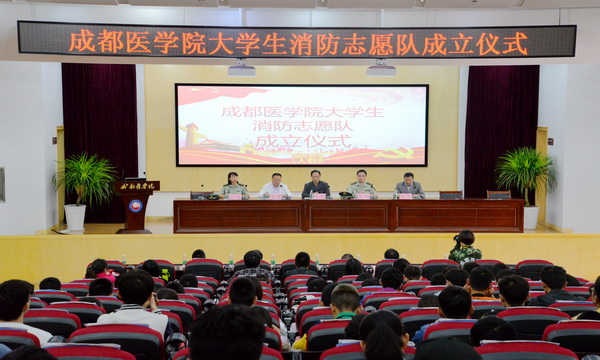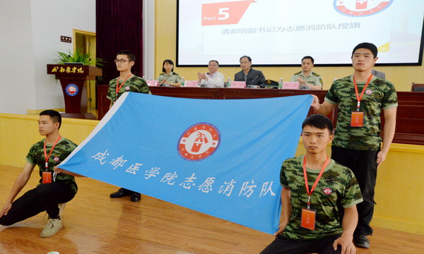 演练结束后,在学术交流中心举行了成都医学院志愿消防队成立仪式,党委武装部、保卫部(处)处长马勇主持仪式并宣读关于成立大学生志愿消防队的相关决定。