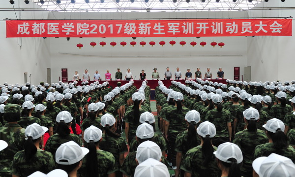 9月7日下午,成都医学院2017级新生军训动员大会在两校区隆重举行。学校党委书记余小平,承训部队武警成都支队副支队长何峰出席大会。大会由校党委副书记郝明主持,各相关职能部门、二级院(系)负责人及全体新生参加大会。