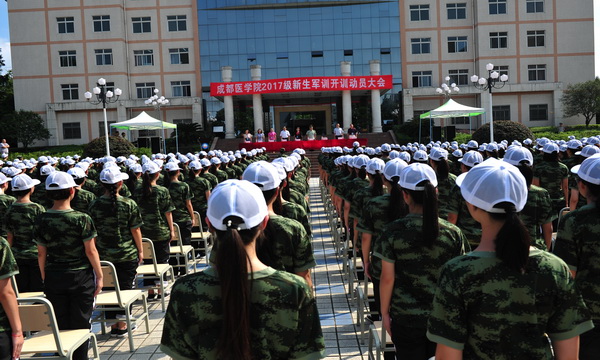 在教官和学生代表宣誓要完成好军训任务后,余小平书记作了动员讲话。她指出,成都医学院有57年的军队办学历程,部队的革命精神和优良传统是我们的根和魂。今年是学校建校70周年的校庆年,希望同学们通过军训继承传统,养成压倒一切去争取胜利的意志,争做有“五个特别”精神的成医人,用实际行动为校庆添彩。她同时指出,军训是党和国家富国强军的战略决策,希望同学们居安思危,牢固树立国防意识,在军事训练中增长才干,掌握必要的军事技能和理论知识,成为国防力量的有效后备军,为强军梦加码蓄力。