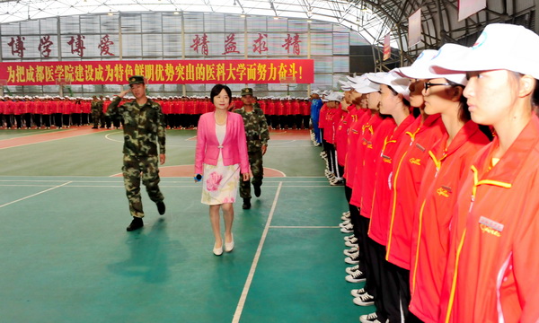 岳春来大队长向同学们圆满完成军训任务表示了祝贺,希望同学们心系国防,欢迎大家携笔从戎,成为并肩战斗的战友。同时,也祝愿成医的明天更美好。